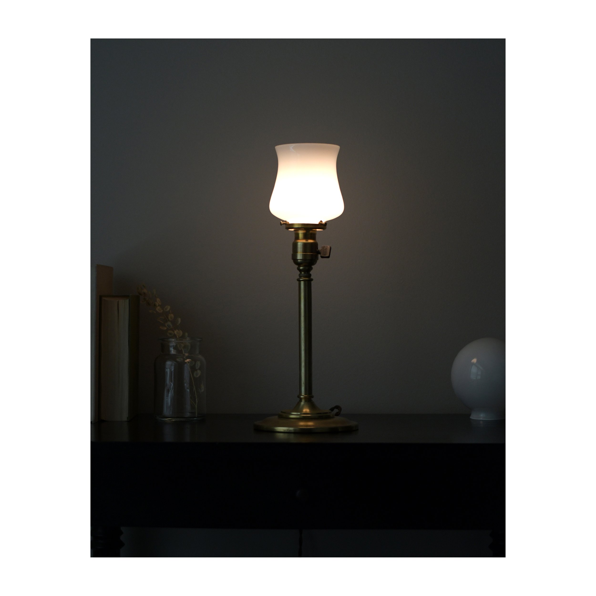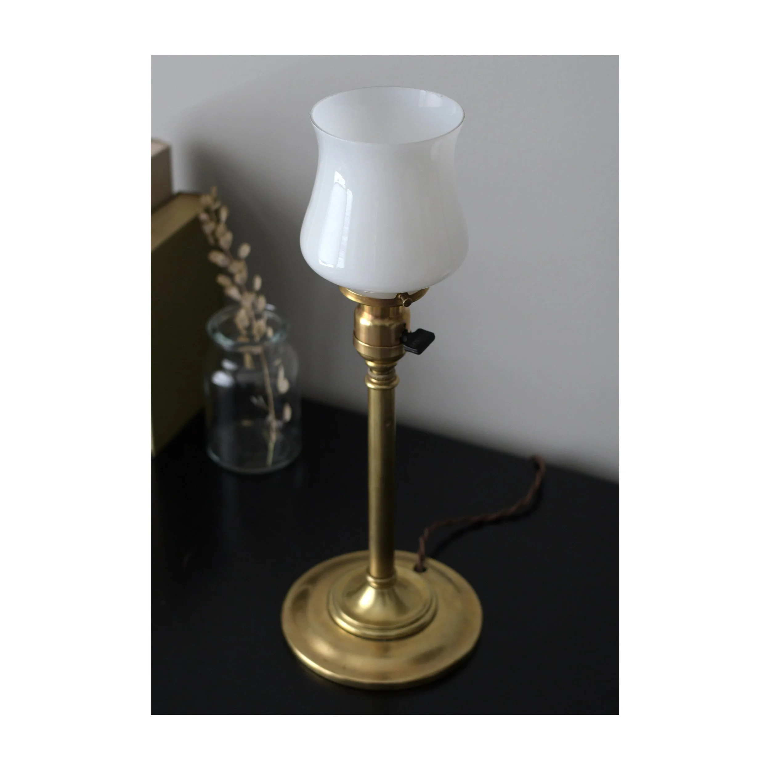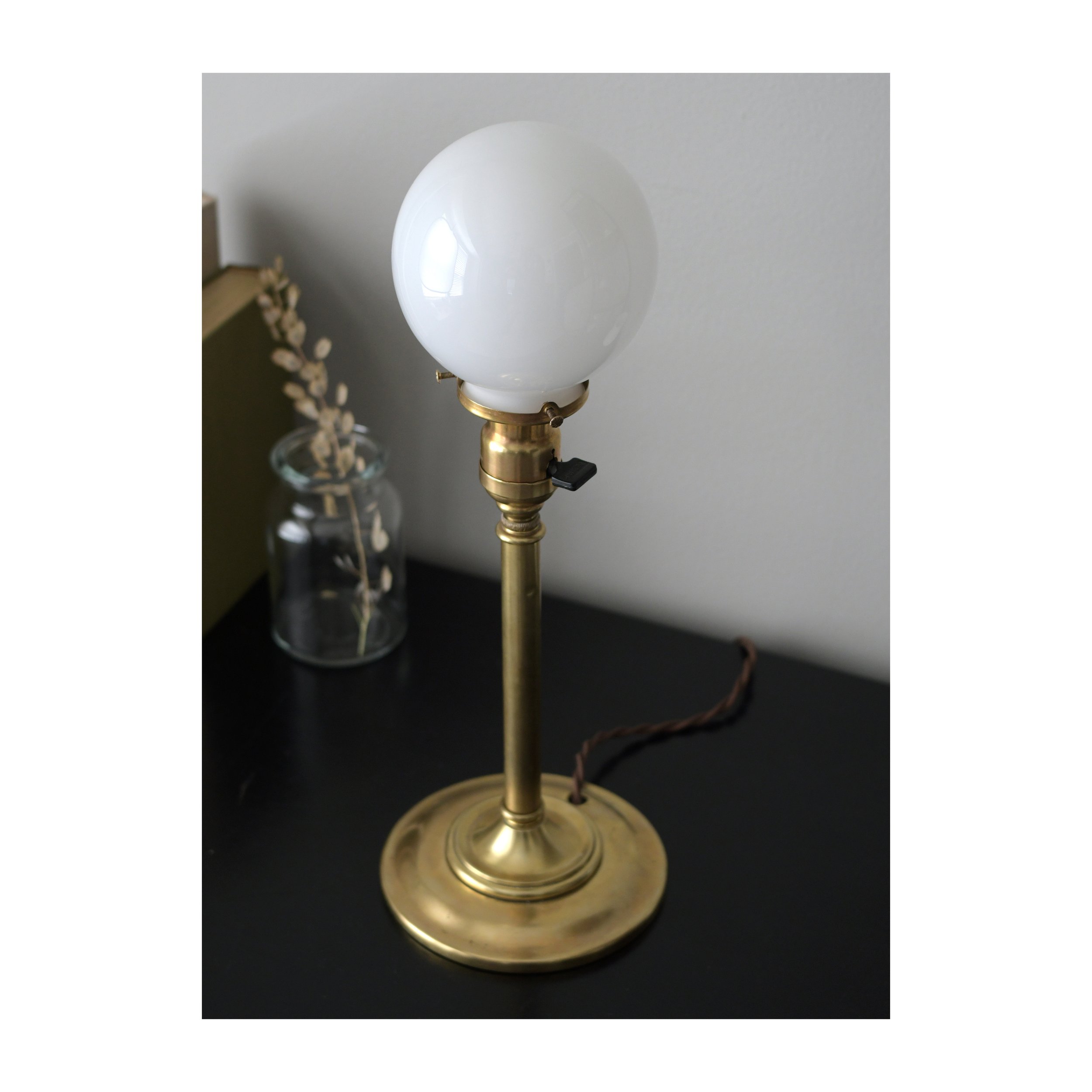 -Antique (early 20th-century) brass table lamp.