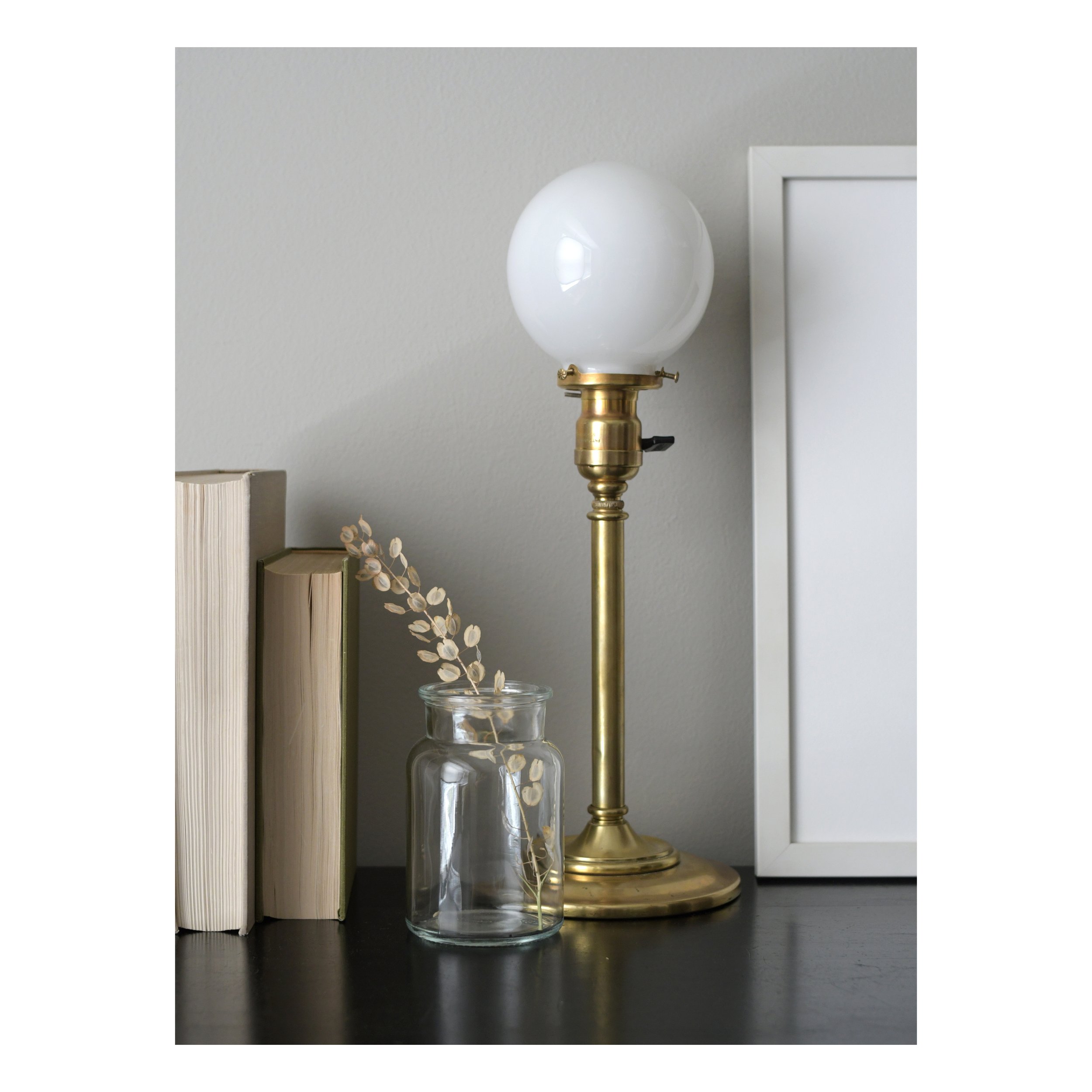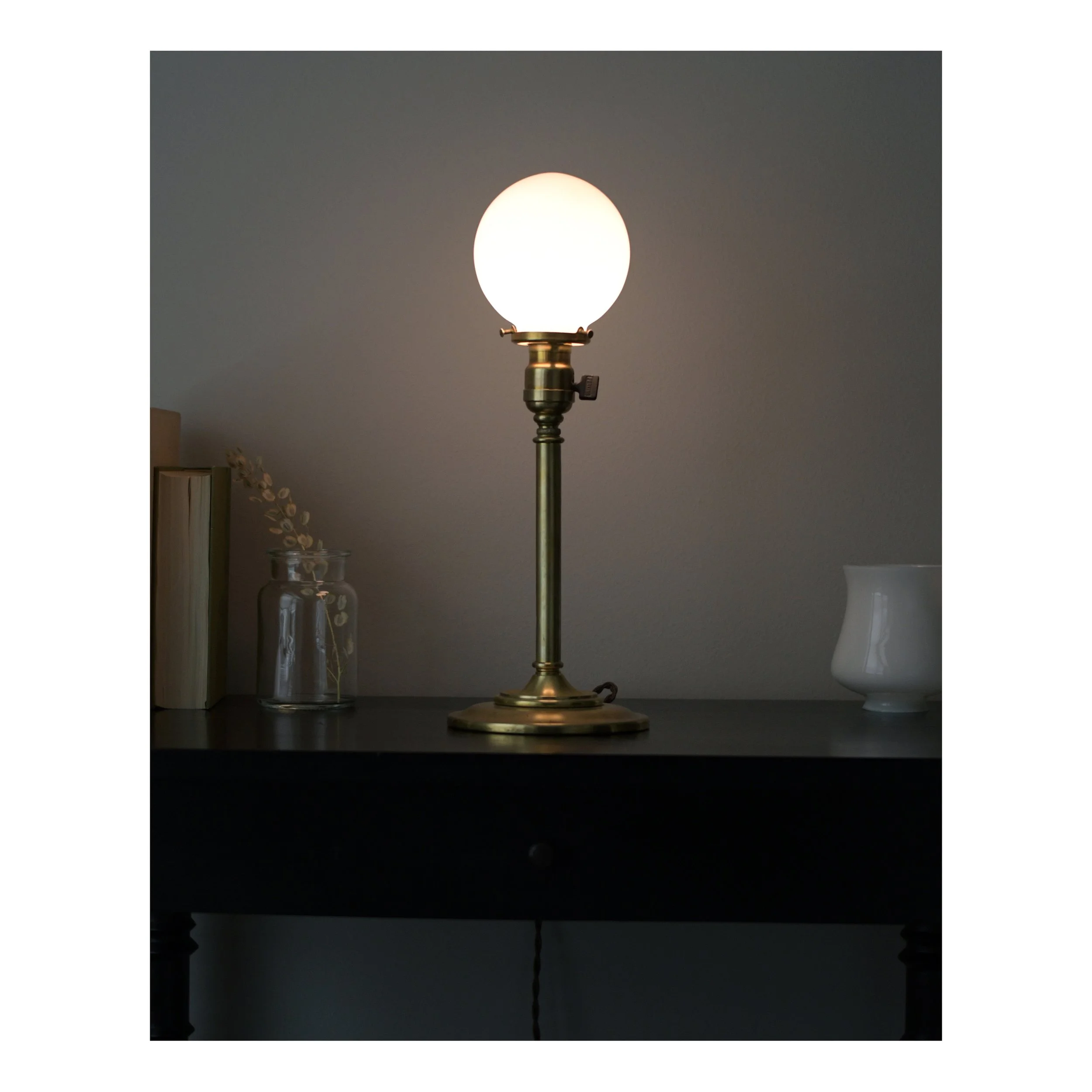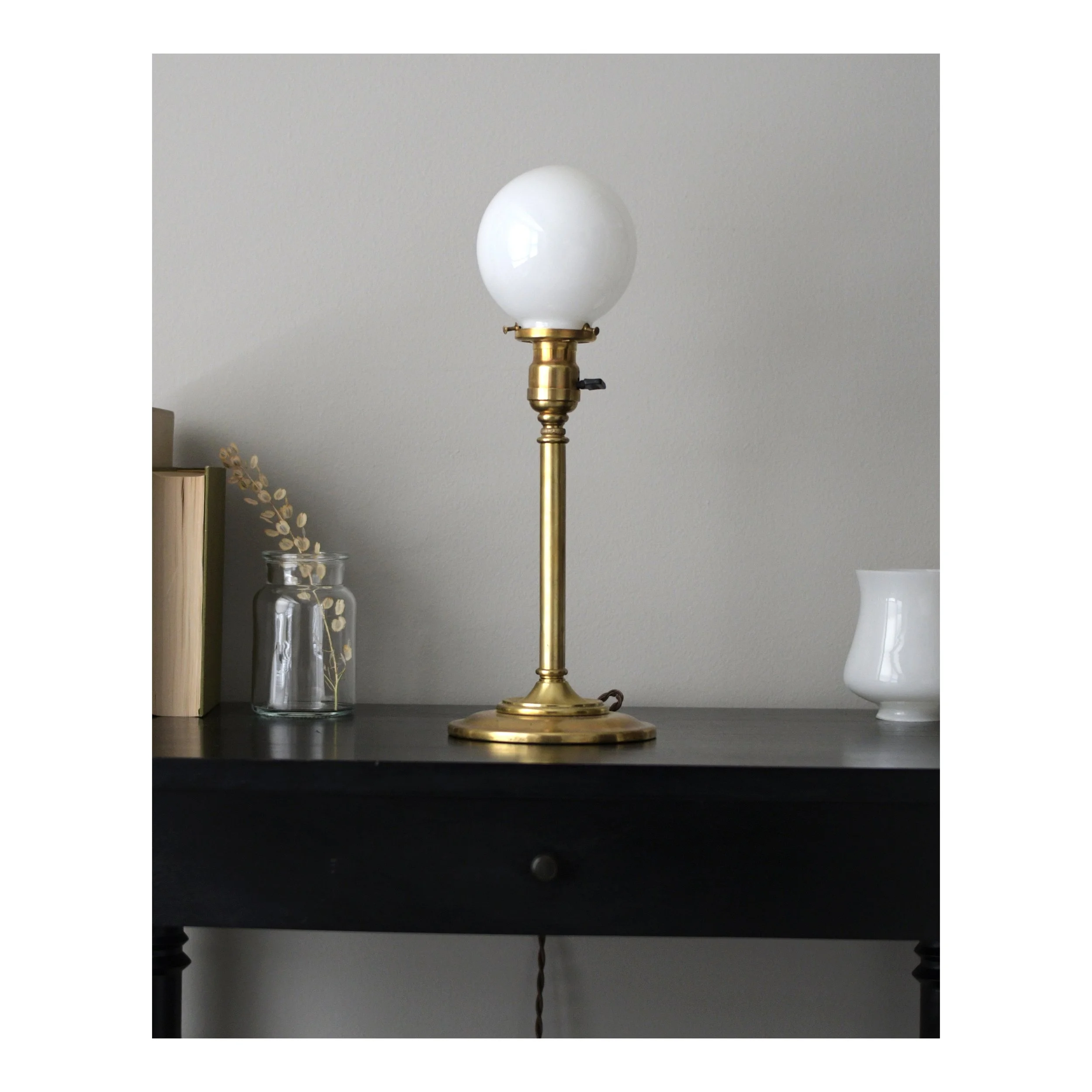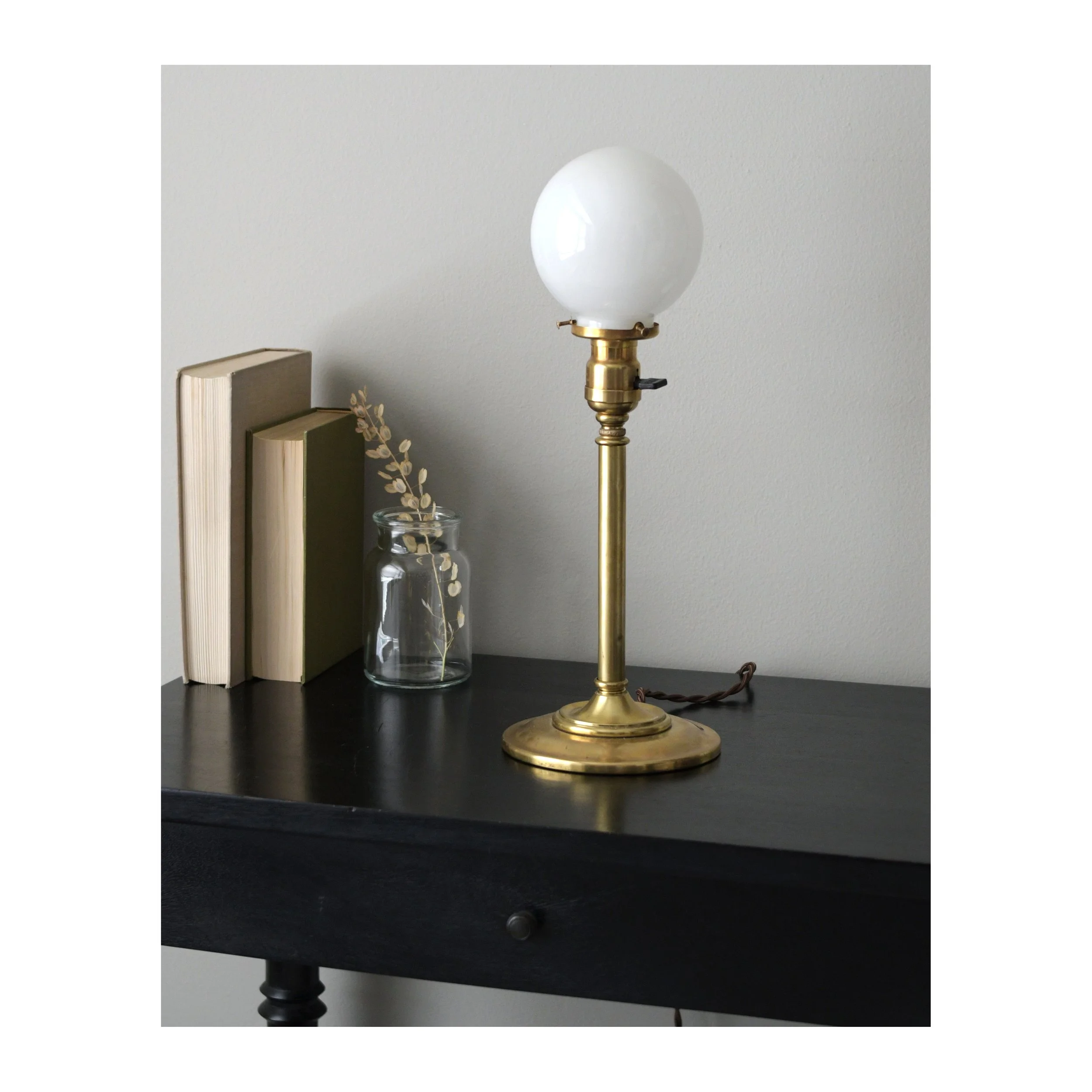 -Antique (early 20th-century) brass table lamp.